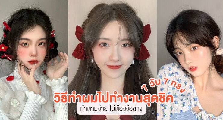รวบเก็บผมบริเวนหน้าผากขึ้นก่อนเป็นอันดับแรก โดยใช้มือค่อยๆสางผมขึ้นไป อาจจะหมุนเกลียวให้ผมบริเวณหน้าผากดูมีวอลลุ่มไม่รวบตึงจนลีบแบน แบ่งผมกลางหน้าผากให้เป็นรูปหัวใจ ช่วยทำให้ใบหน้าดูหวานสดใสเป็นธรรมชาติมากขึ้น