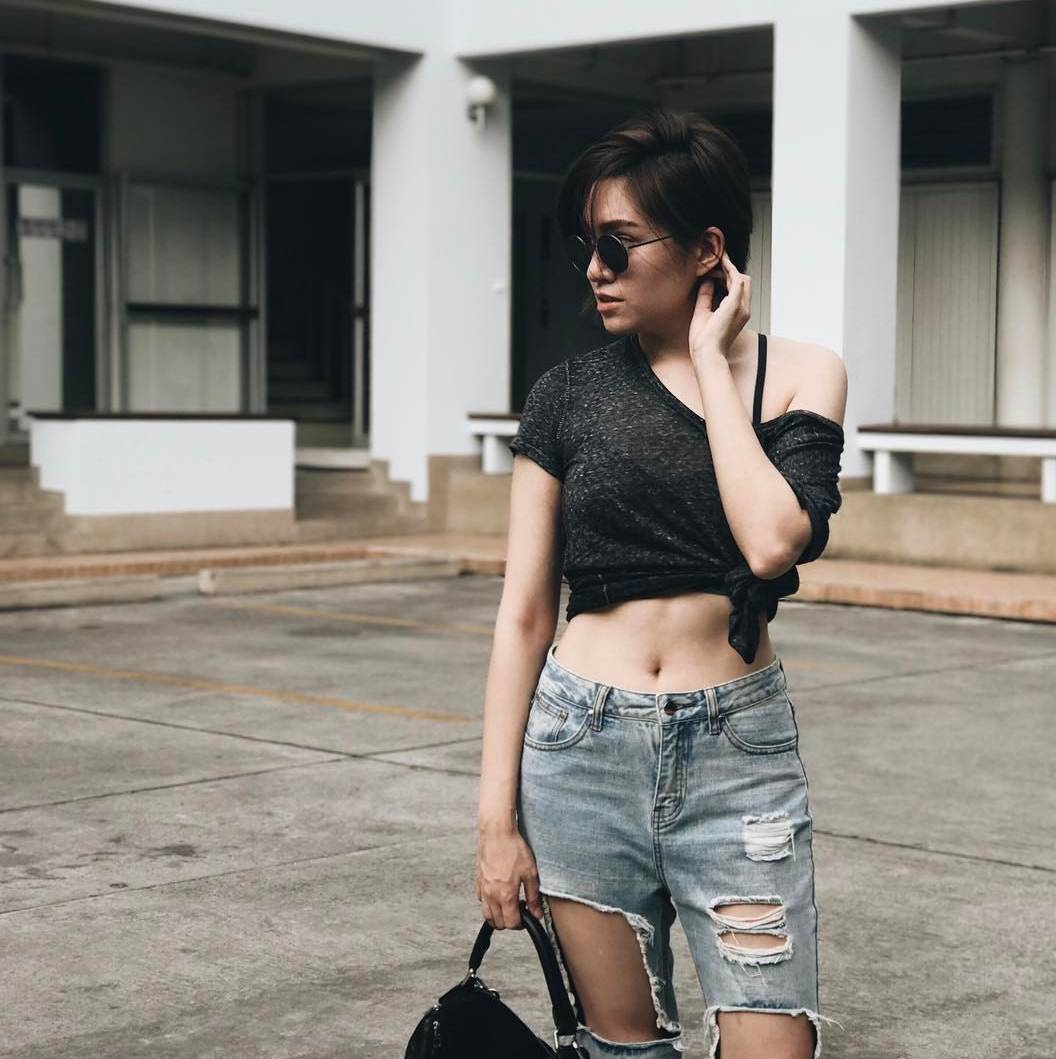 29. เรียบง่ายด้วยเสื้อกล้ามแมทช์กับกางเกงยีนส์ขาดๆ