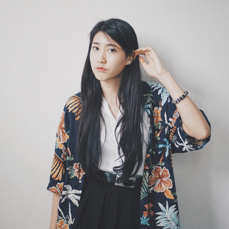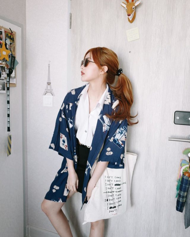 14.หาเสื้อฮาวายตัวใหญ่แมทช์กับชุดนักศึกษา ได้ลุคสาวสายศิลป์ติสท์ๆ