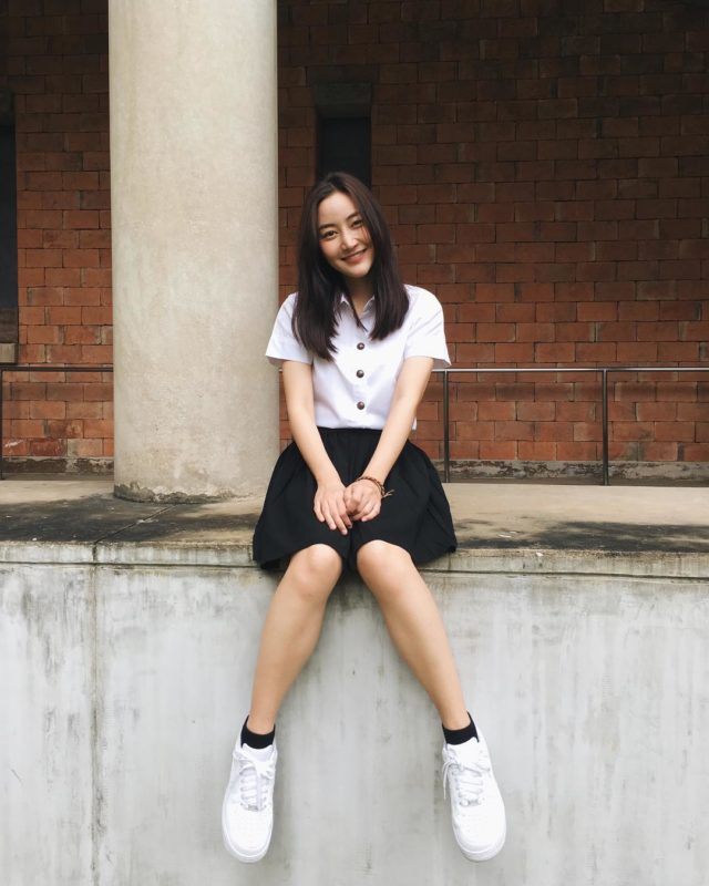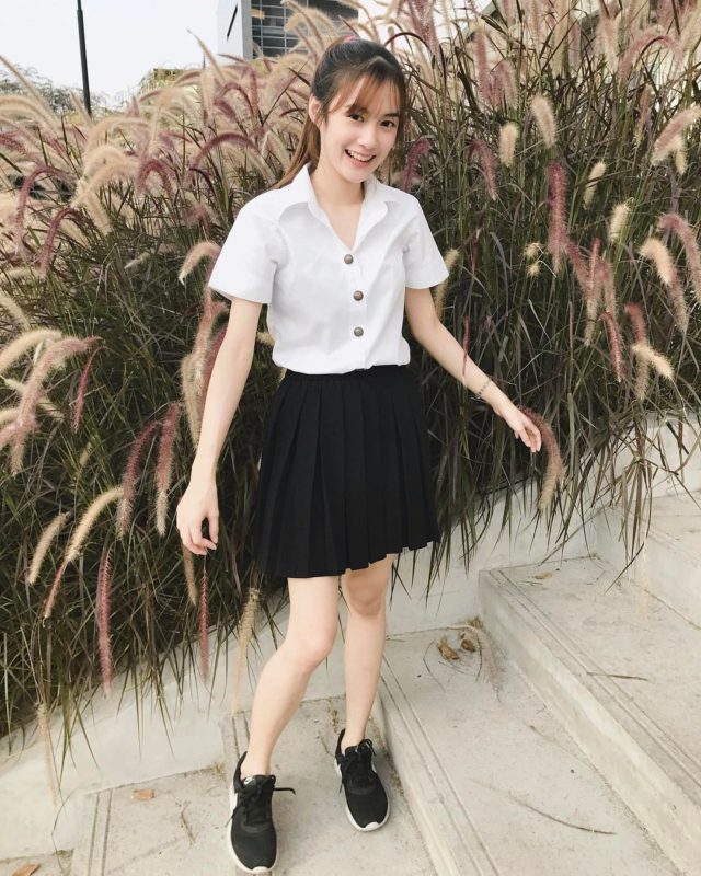 23.ชุดนักศึกษาลุยๆใสใสแมทช์กับรองเท้าผ้าใบ