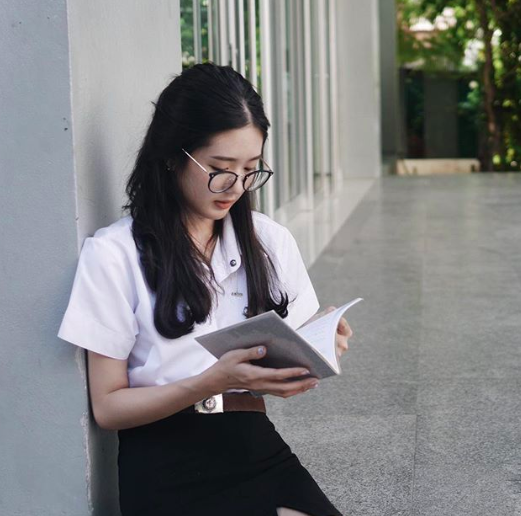 13.เพิ่มความน่ารักให้กับลุคนักศึกษาด้วยทรงผมบันและแว่นตา