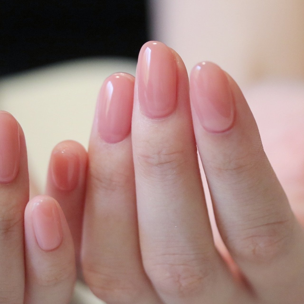 4. เล็บสีชมพูแบบจางๆ เลียนแบบสีเล็บจริง ทำแล้วมือละมุนสุด
